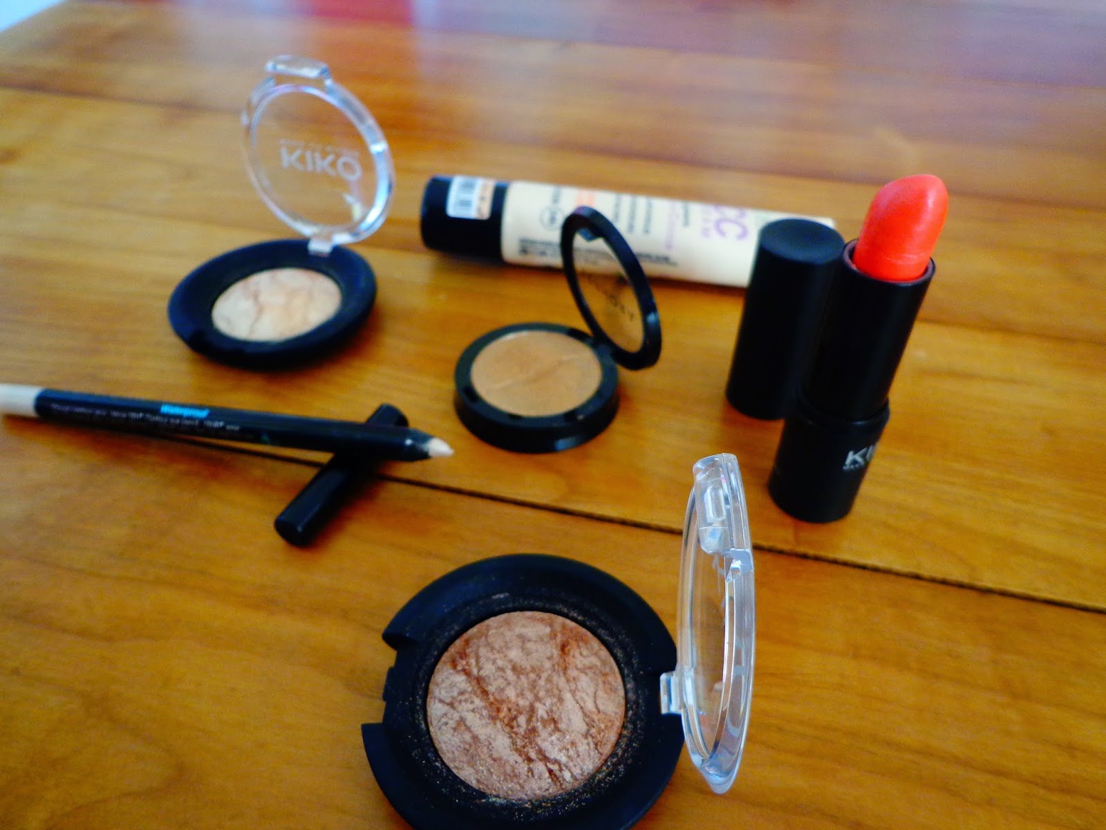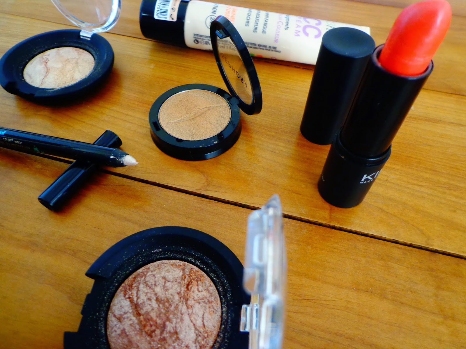 | De gauche à droite: Sephora Sunday Brunch, Kiko Ombretto N°4, Kiko Ombretto N°3 et Crayon Blonde Ambition |