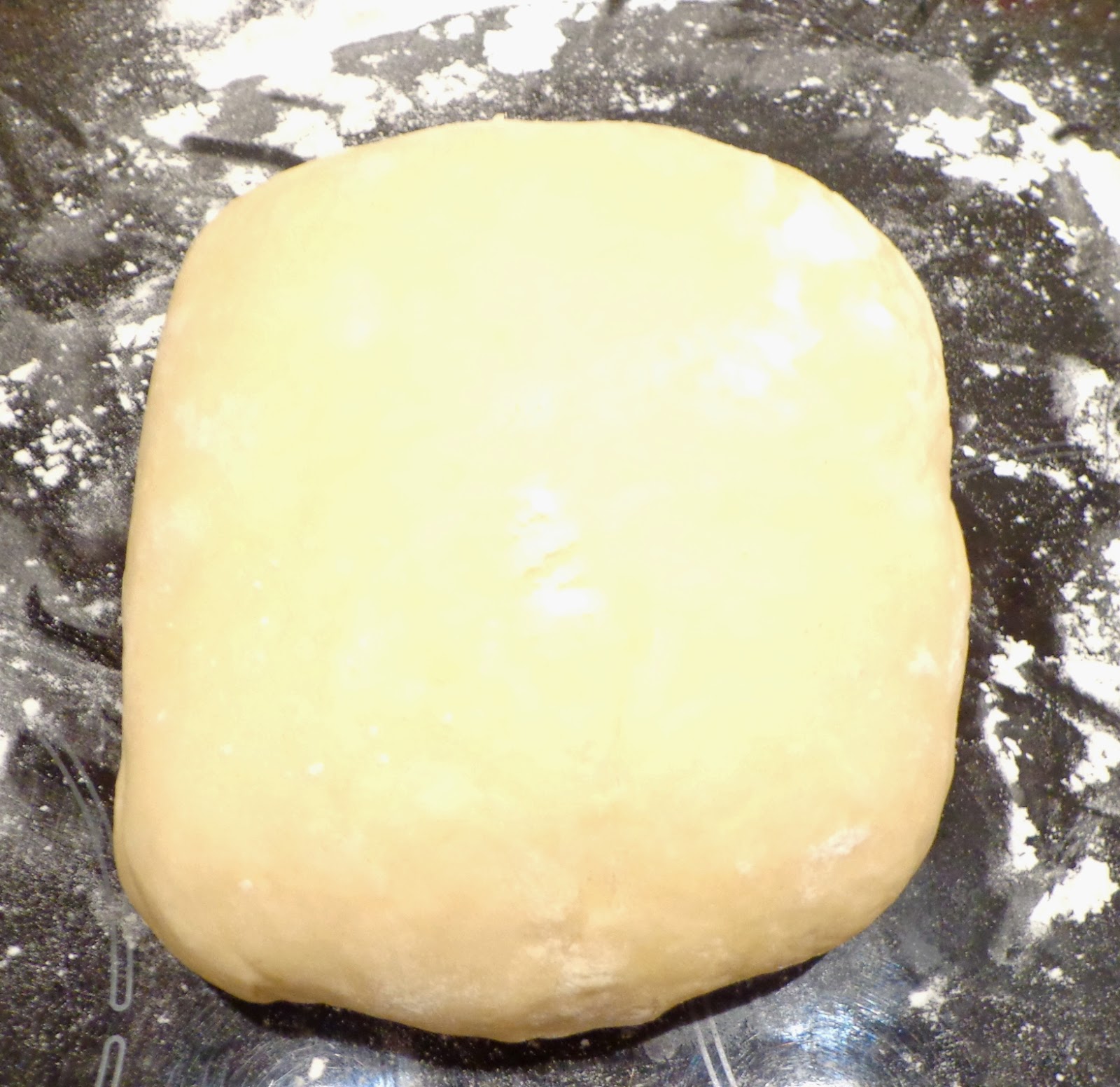 2. Place the dough on the floured surface and spread a square of 45×45 cm.