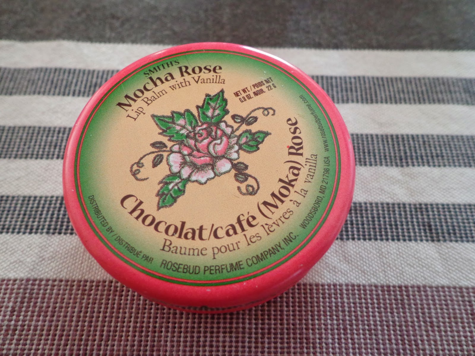 The last but not least product from this gift package is the Rosebud Salve Mocha Rose Lip Balm from Smith’s.