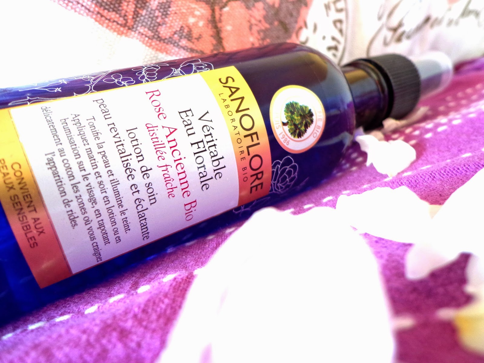 Ce fameux produit est une eau florale à la rose ancienne. Celle que j’utilise actuellement est celle de SANOFLORE – Véritable Eau Florale à la Rose Ancienne Bio (distillée fraîche).