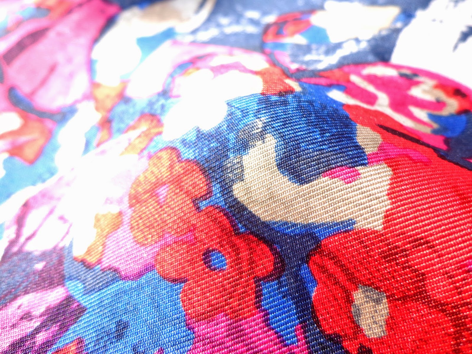 I love the bright colors of this scarf: blue and fuchsia. The drawings remind me of a mix between Picasso and Dali: bulls, how are designed and arranged the flowers remind me a little the Impressionist period.