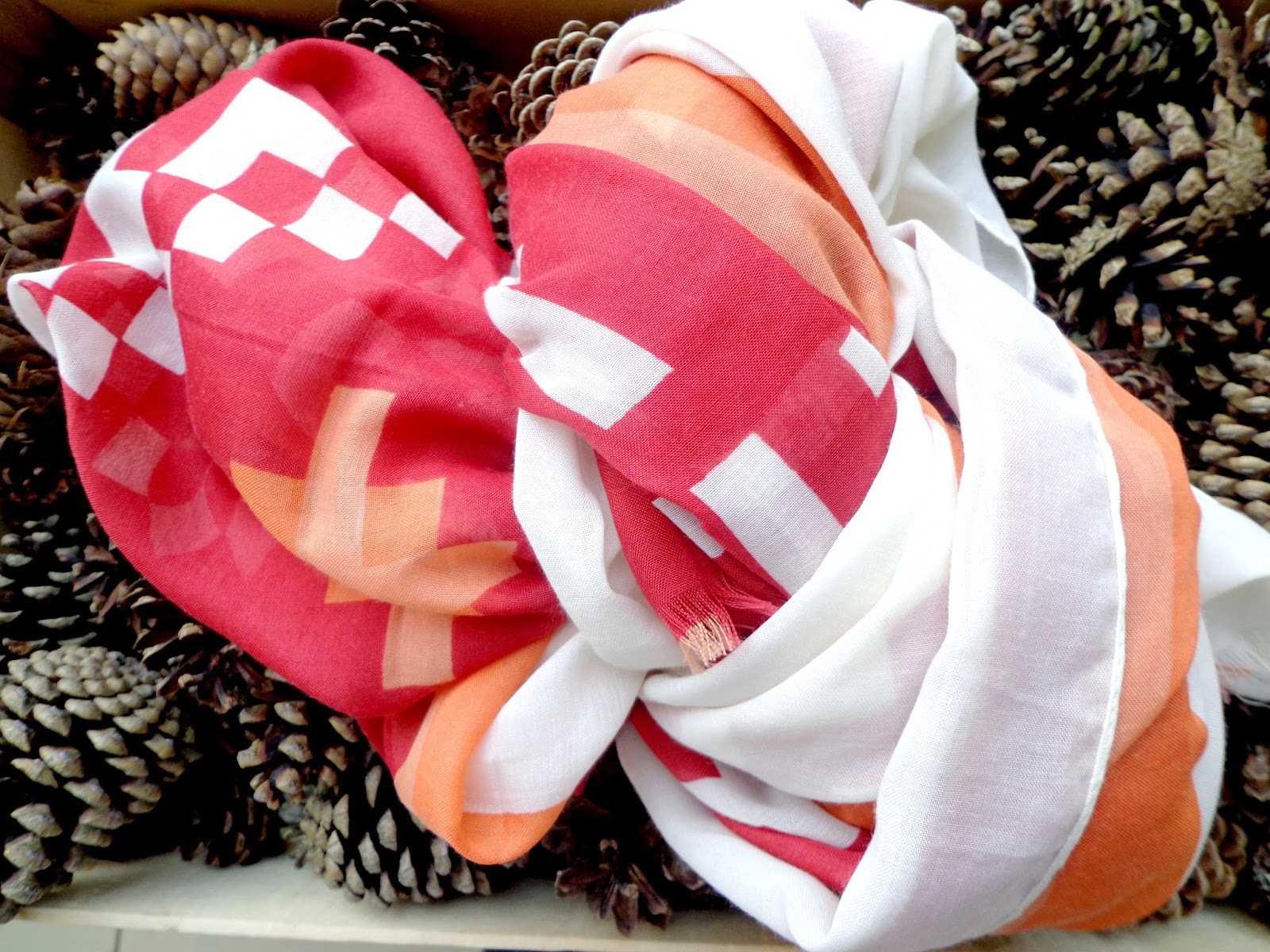 This is a scarf for Etam I’ve found last week. Unfortunately, there is no visual on their website. Try checkin in your local store to see if it is still available. Besides being pretty, it was 50% off (approximately 7€ if I’m not mistaken)!
