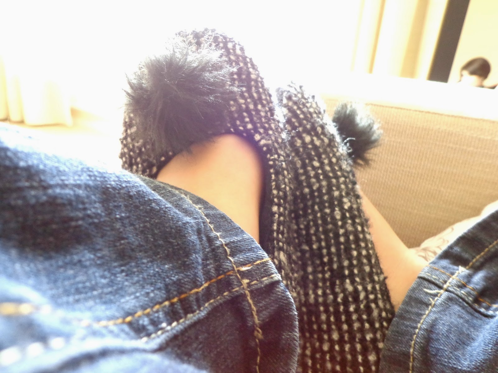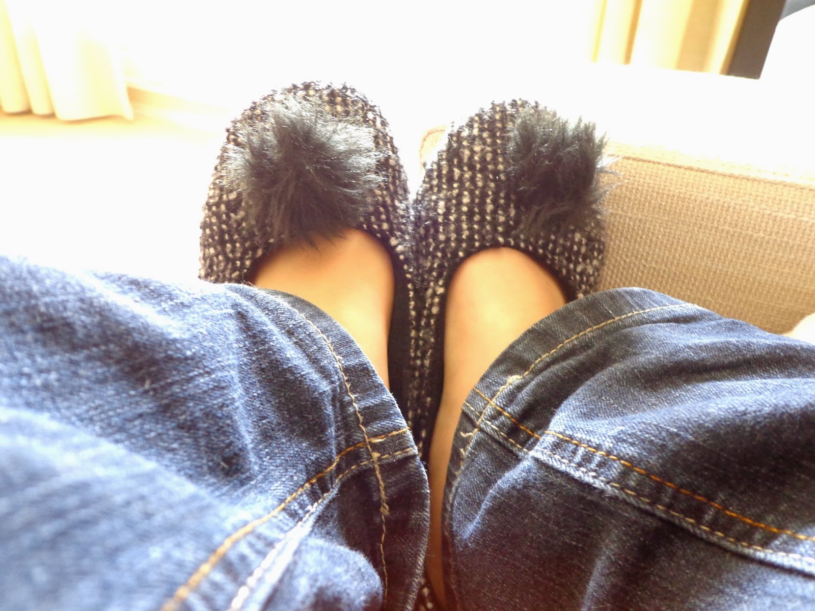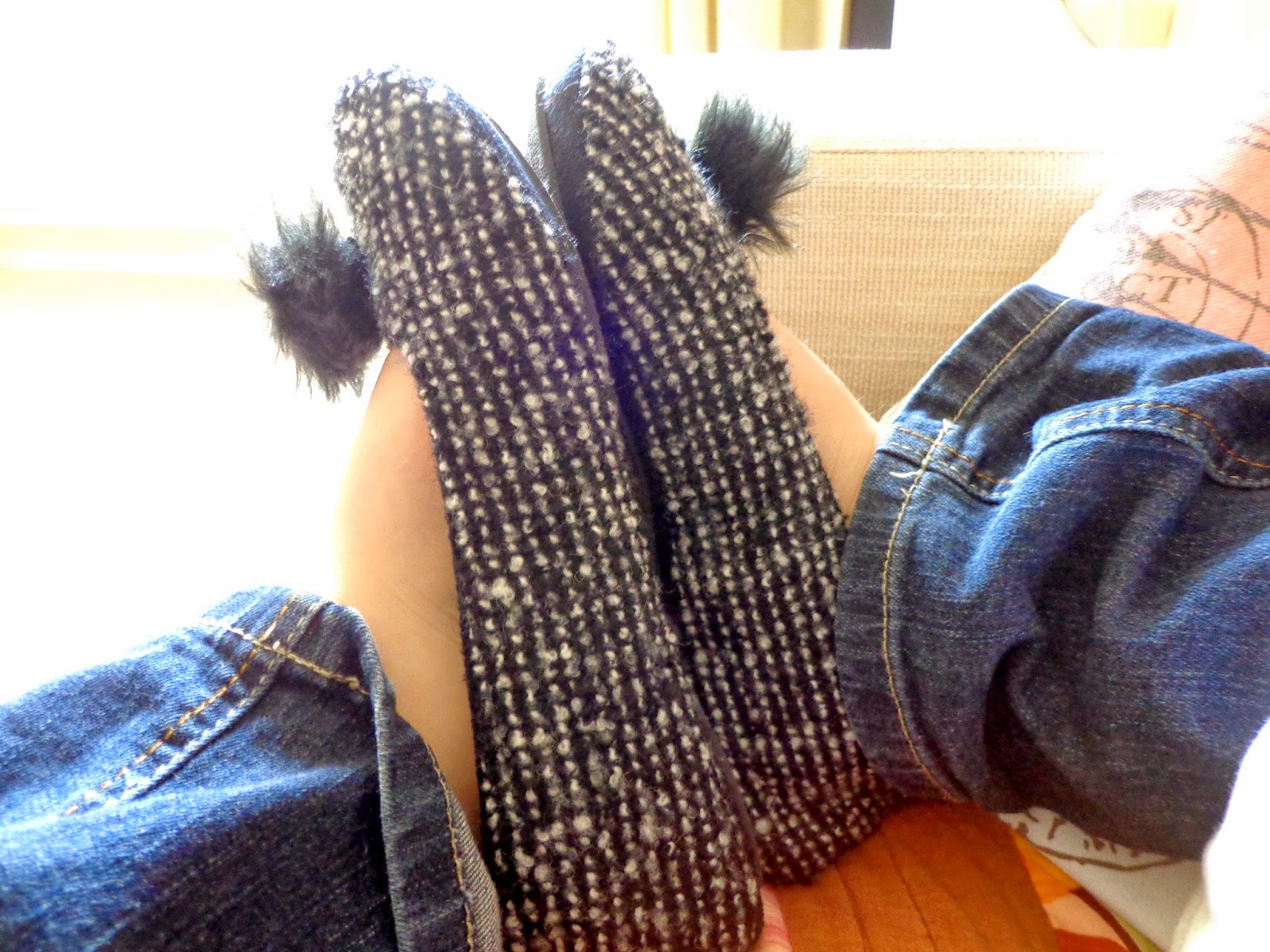 The new one comes from Etam and they look kinda like a ballet shoes: top level comfort. A soft fleece interior, these sleepers are wearing tweed and a cute pompon!