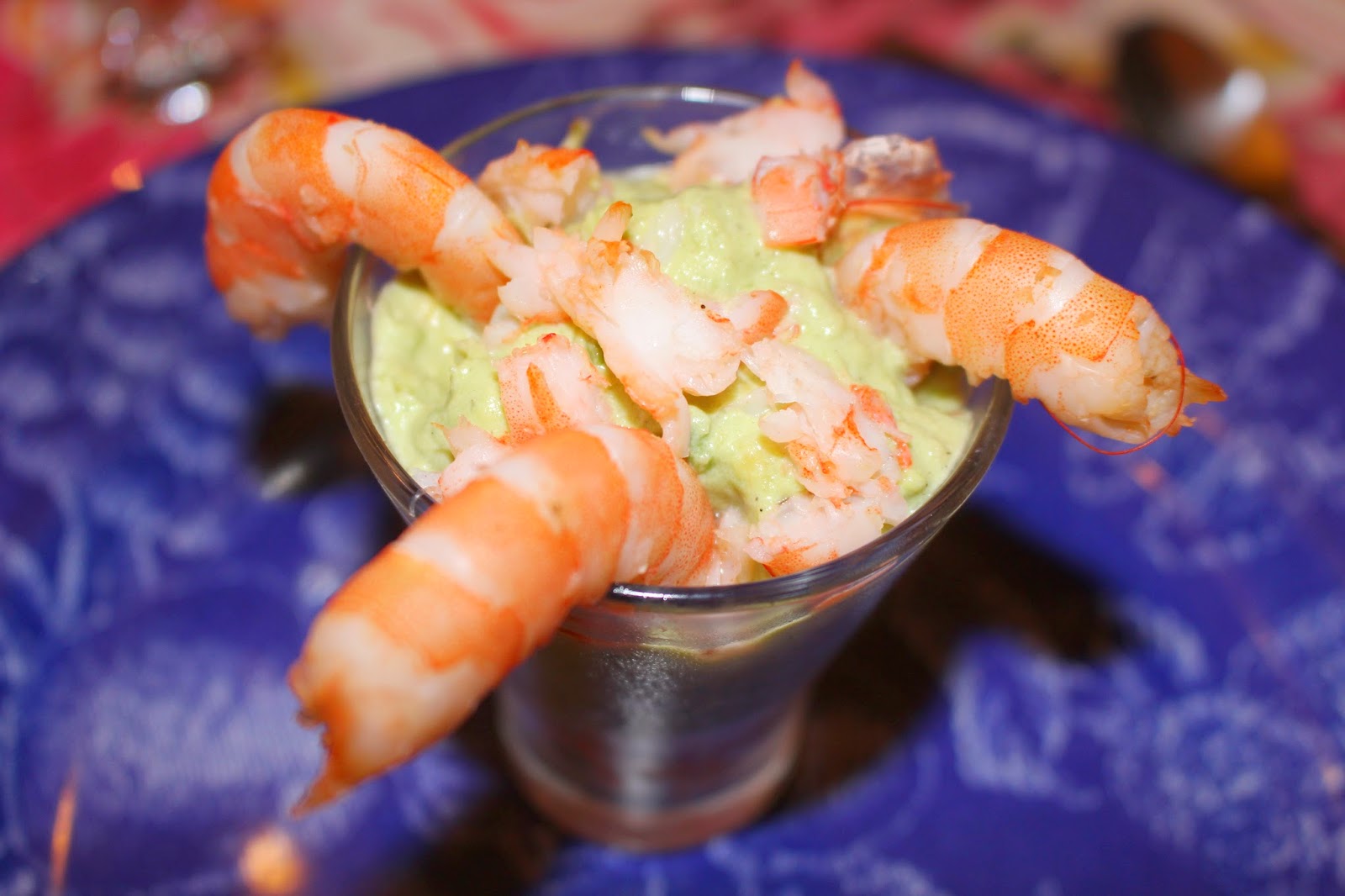Starter: avocado cream with shrimps.