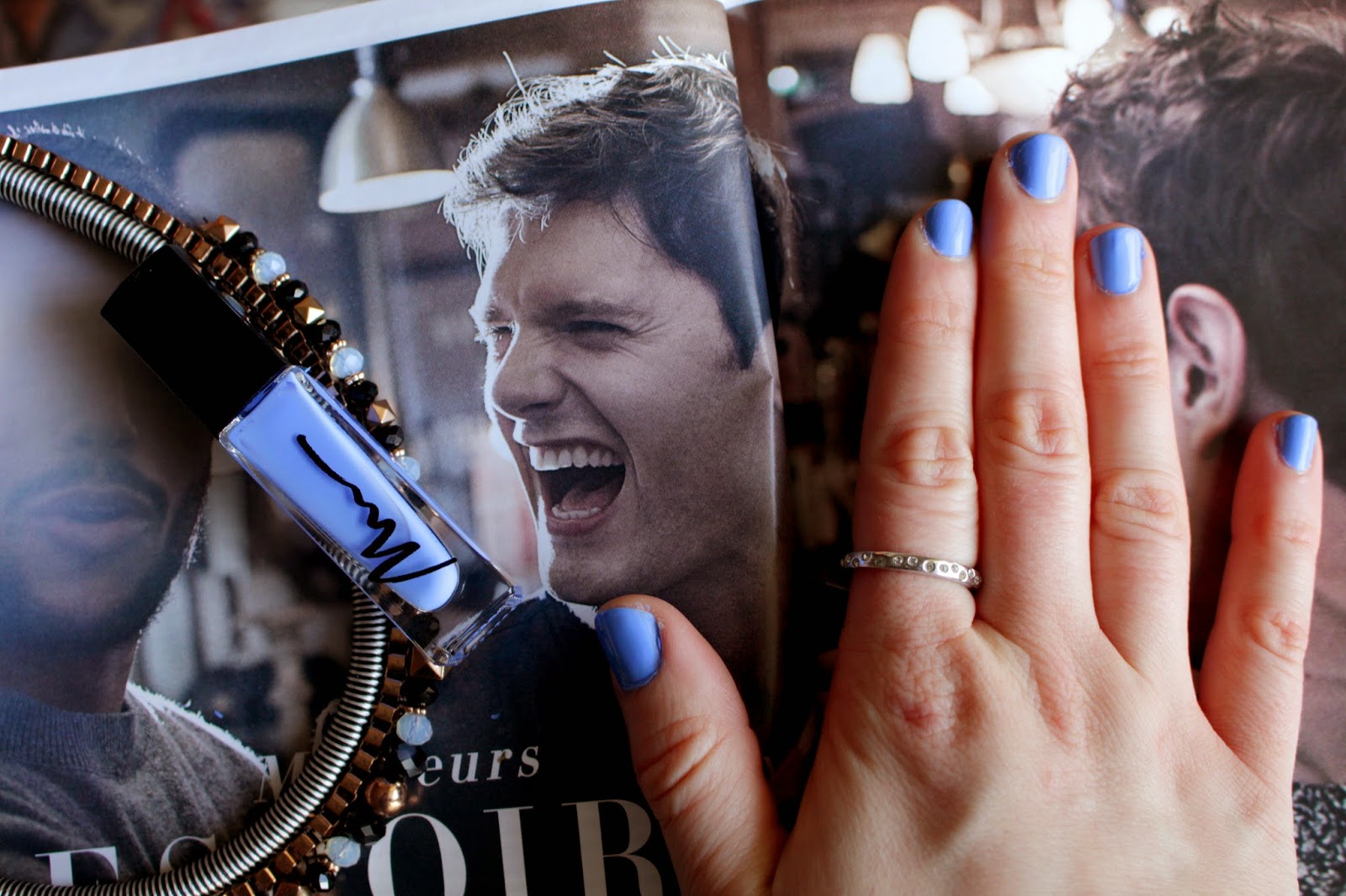 Un joli vernis, une musique entraînante, un beau sourire ou la douce mélodie des rires, il n’en faut parfois pas beaucoup pour profiter de petites bulles de bonheur. La composition que je vous propose aujourd’hui est un mélange de tout ça: un vernis bleu égayant les ciels parfois enneigés, un collier que j’adore et une photo dans le Glamour du mois de février qui dégage une telle énergie et une telle joie que cela en est communicatif!