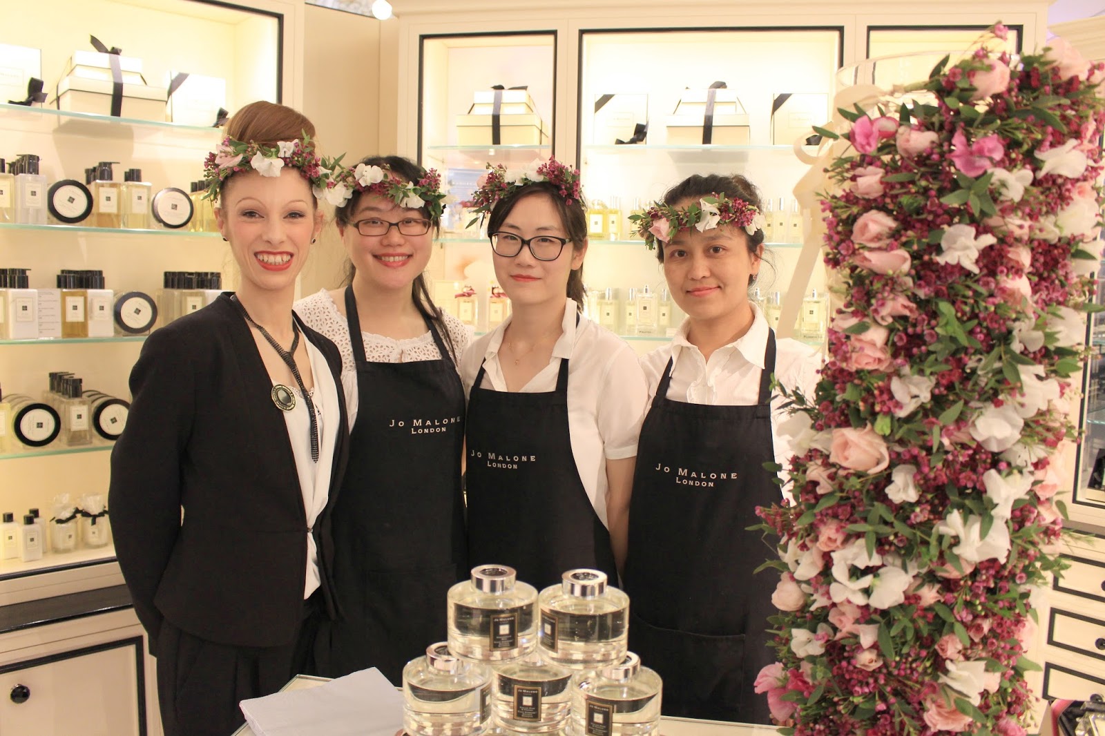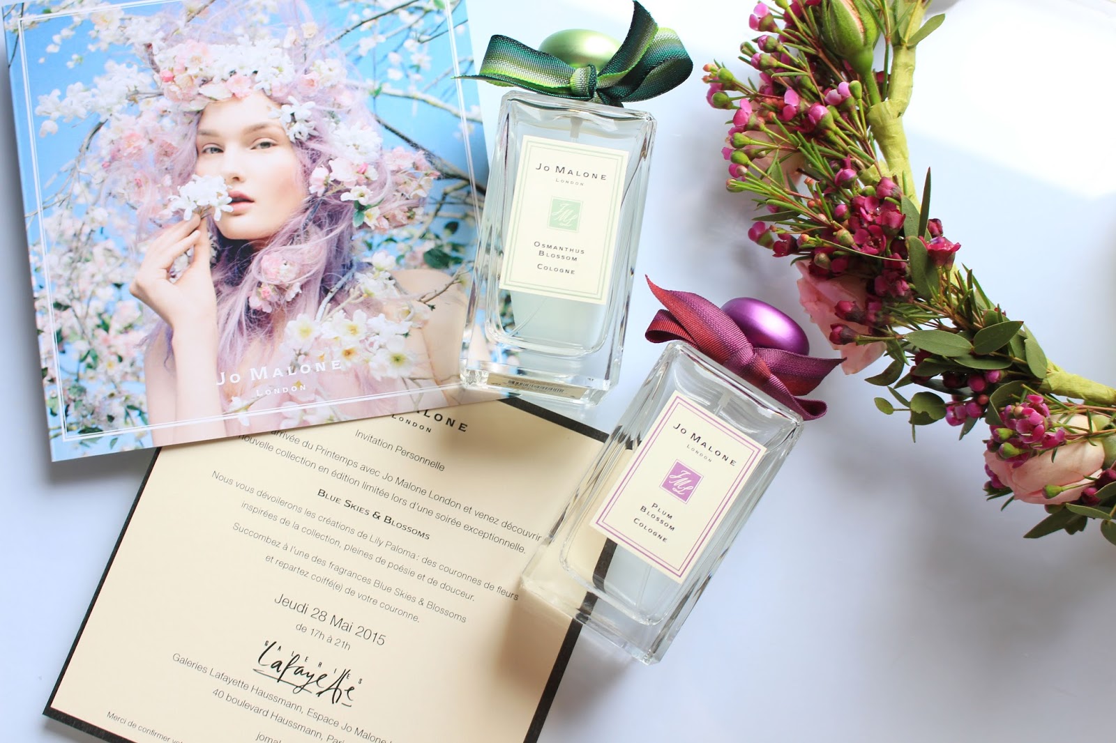 On May the 28, in the Galeries Lafayette Haussmann, the Jo Malone’s corner was budding. A gourmande and fragranced evening held until 9pm. On this occasion, Jo Malone turned to Lily Paloma, design florist to showcase its olfactory creations through fresh flowers crowns. For every purchase from the London Blue Skies & Blossom collection you were leaving with your crown: a nice idea.