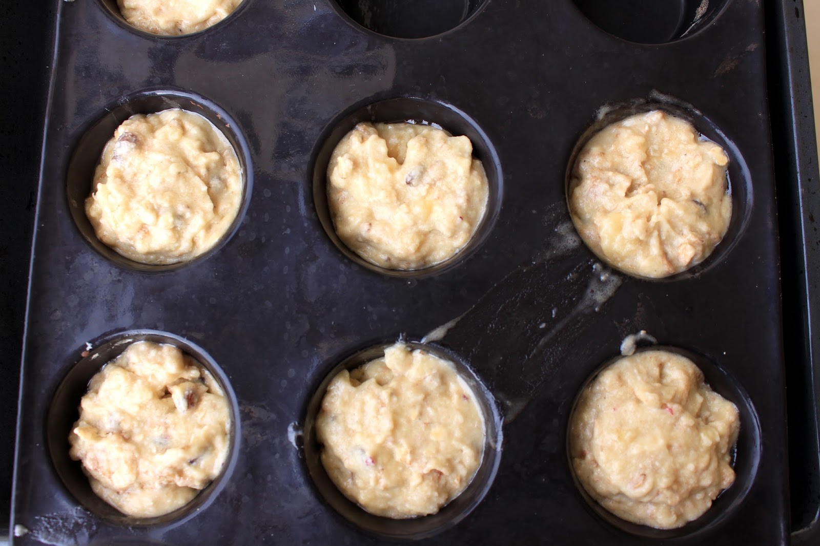 Then add the flour, muesli, baking powder and cinnamon. Homogenize everything.