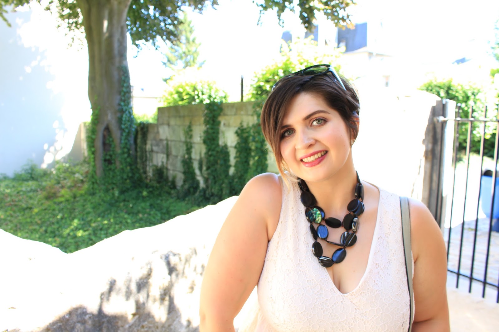 Saint Jean des Vignes Abbey in Soissons is a breathtaking building. As two spears piercing the sky, stone plays with nature. I wanted to play with the classics with white (well … cream) and black. A lace dress, empire waist, which is halfway between the wedding spirit and greek antiquity. To dress down this too « romantic » style I accessorized the dress with some black bold pieces.