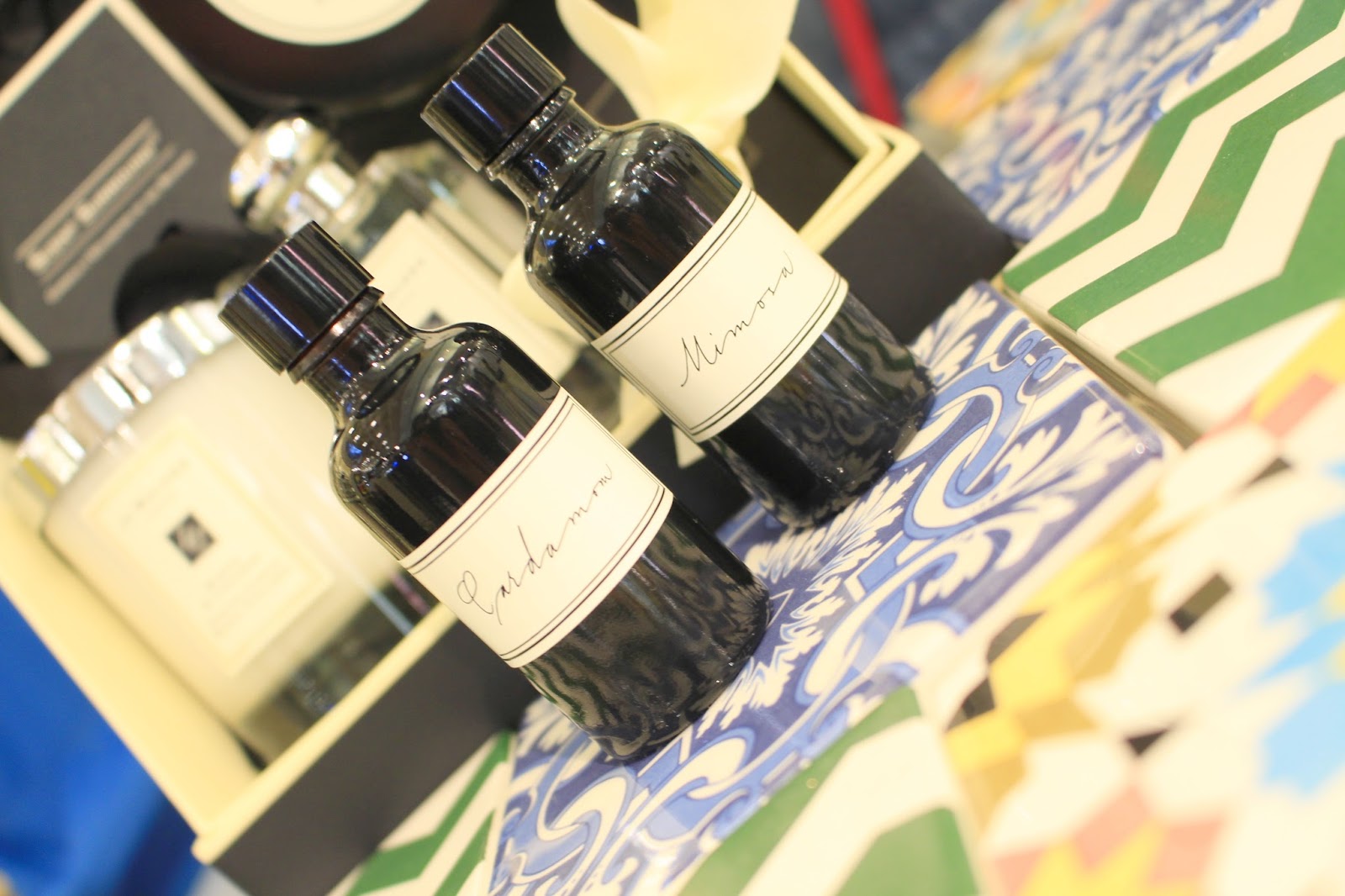 For its launch in France, JML worked with Marion Collard, interior designer to customize the olfactory and visual experience of Mimosa & Cardamom. Marion Collard has created few designs on mosaics that recalled the interiors of Mediterranean houses. Besides being beautiful, mosaic and certain types of porcelain are known to be very good olfactory vectors. The fragrance permeates and diffuses for very long time.