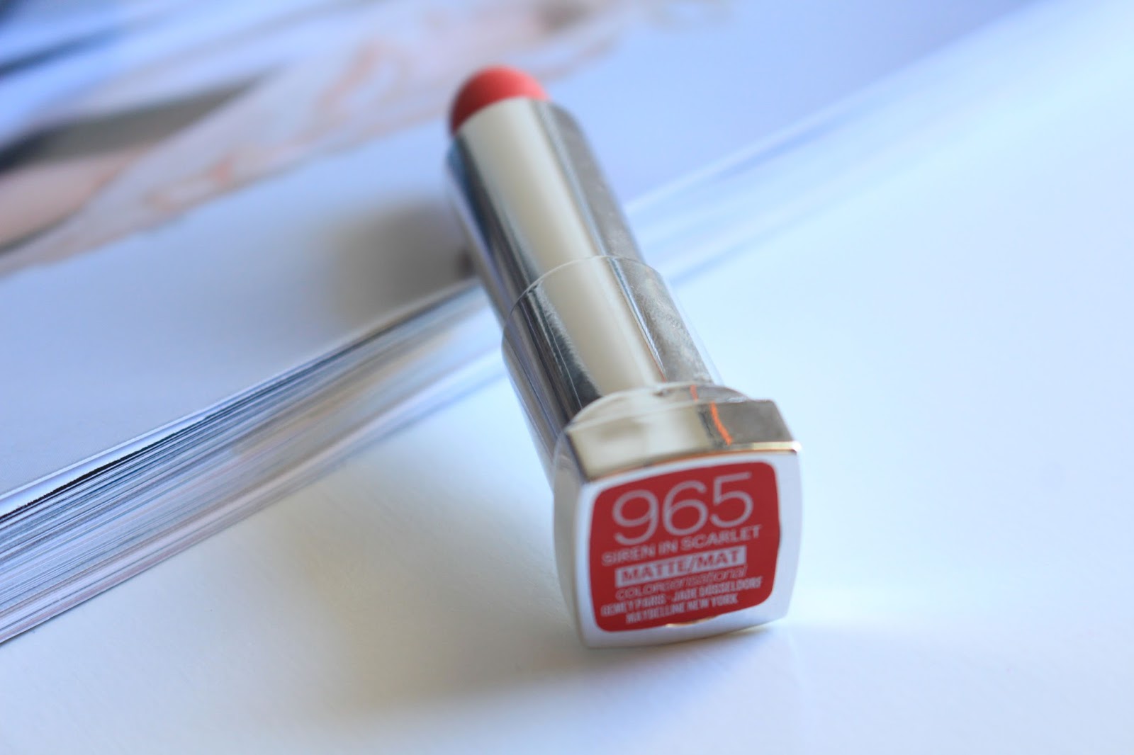 Début septembre, j’ai déniché un nouveau rouge mat qui répond au doux nom de Siren In Scarlet (#965) de chez Gemey Maybelline. Récemment, la marque a lancé la gamme Color Sensational Mat qui est pleine de promesses et nous offre une nouvelle collection de teintes mates (plus mates que celles de chez Rimmel). Lorsqu’il a fallu choisir une couleur, mon cœur a tout de suite était attiré par le rouge.