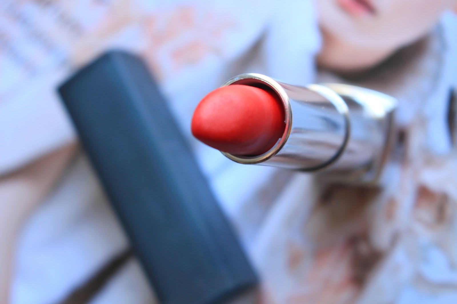 Autumn makes me want to wear red on my lips. Color of leaves which dance in the wind, this shade brings out my pale skin and my blue eyes.