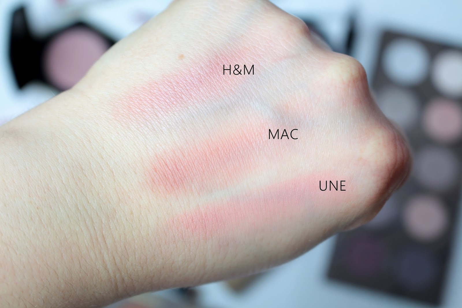 For the complexion, I always choose to have a fresh and natural skin and for blushers, my choice always goes to rosewood blush – meaning pink with brownish under tones. They give a natural flush while being fresh and healthy. My current trio: H&M Beauty Pure Radiance Powder Blusher #Cameo Pink, my lovely Blushbaby (review) from MAC and the Breezy Cheeks #B02 by UNE which is a cream formula.
