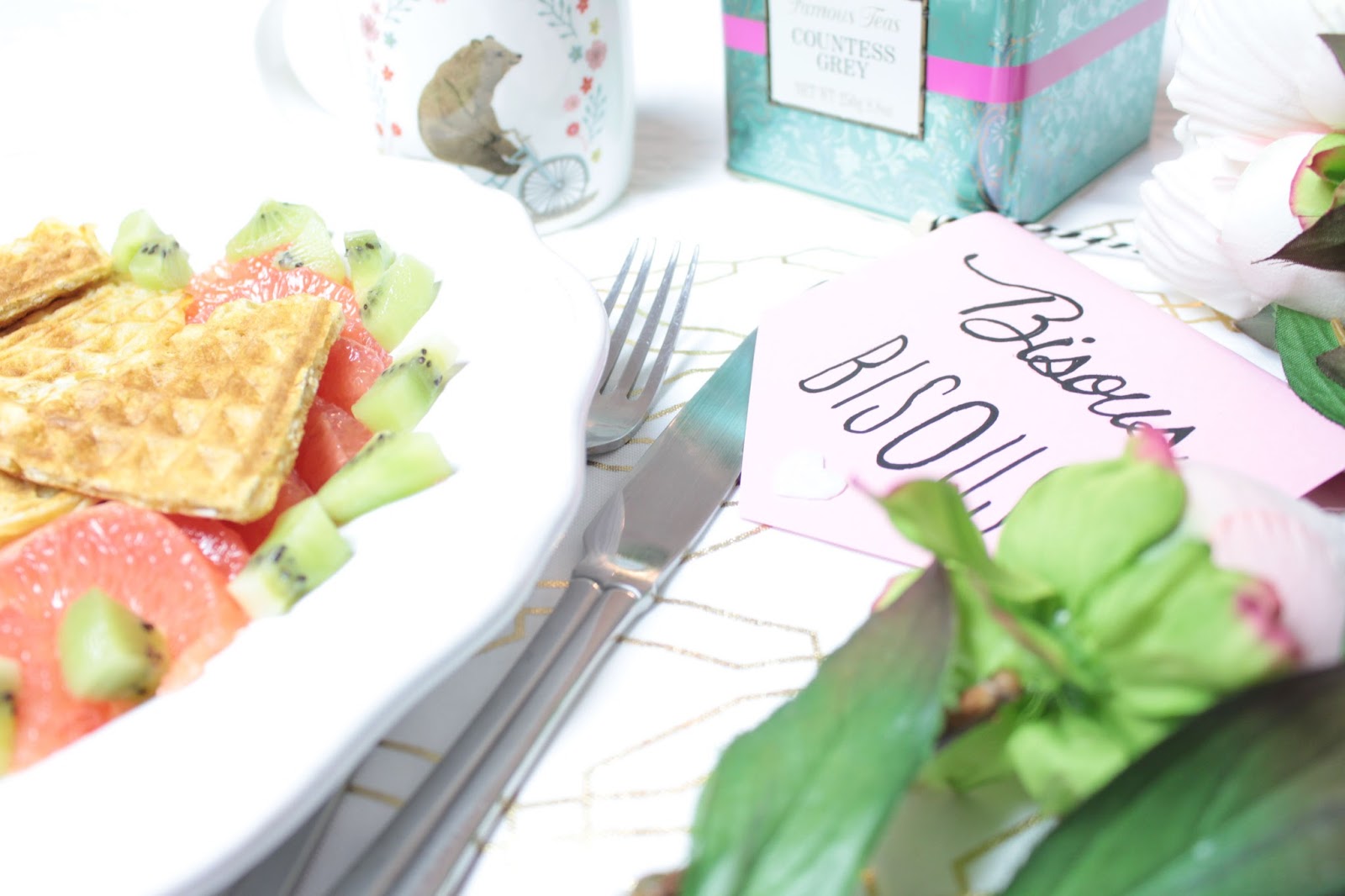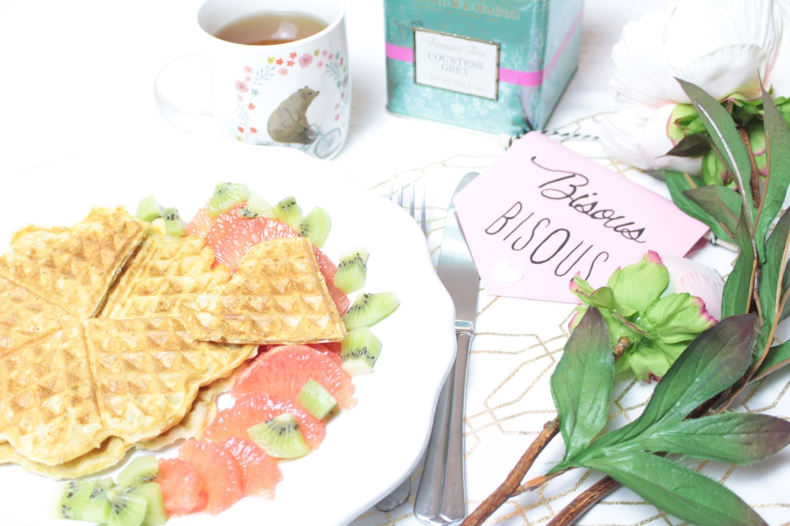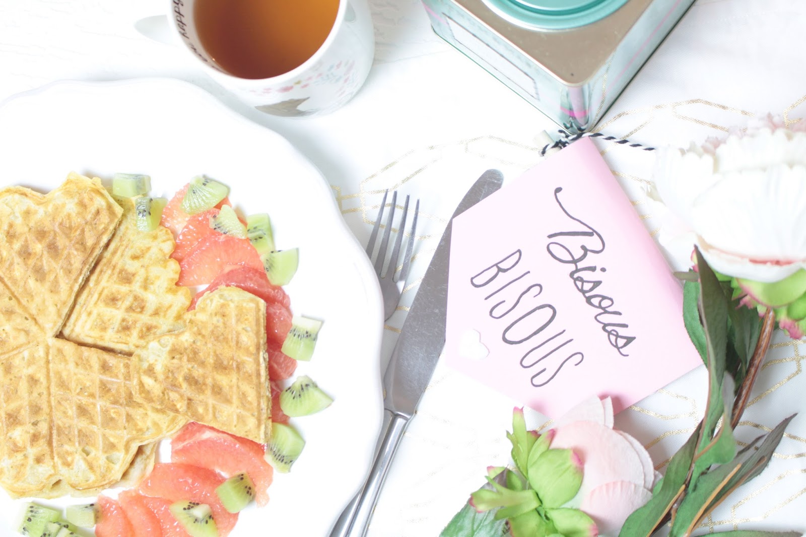 Des gaufres en forme de cœur pour un petit-déjeuner romantique.