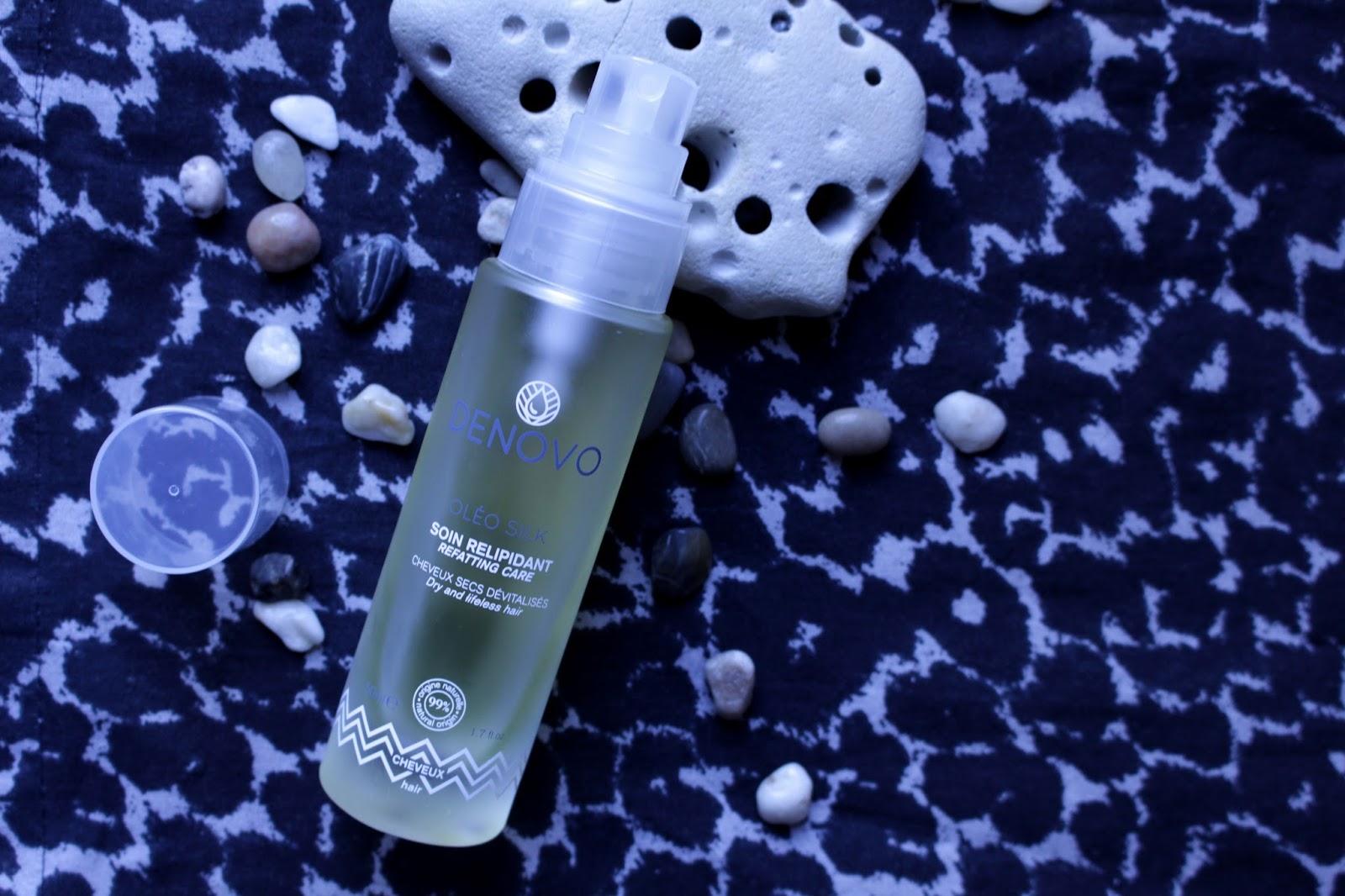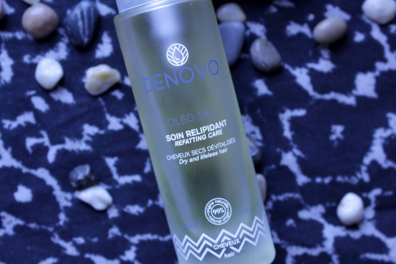 Alors…j’ai réfléchi et je me suis dit qu’il fallait apporter un peu de « nourriture » aux cheveux et cuir chevelu. Le contraire de « sec », c’est hydratation et plus spécifiquement, « corps gras ». Je me suis donc tournée vers une huile pour les cheveux. J’ai trouvé l’Oléo Silk de Denovo dans mes placards (reçue dans le trousse Week-End de The Beautyst x La Redoute) que je n’avais pas encore essayé.