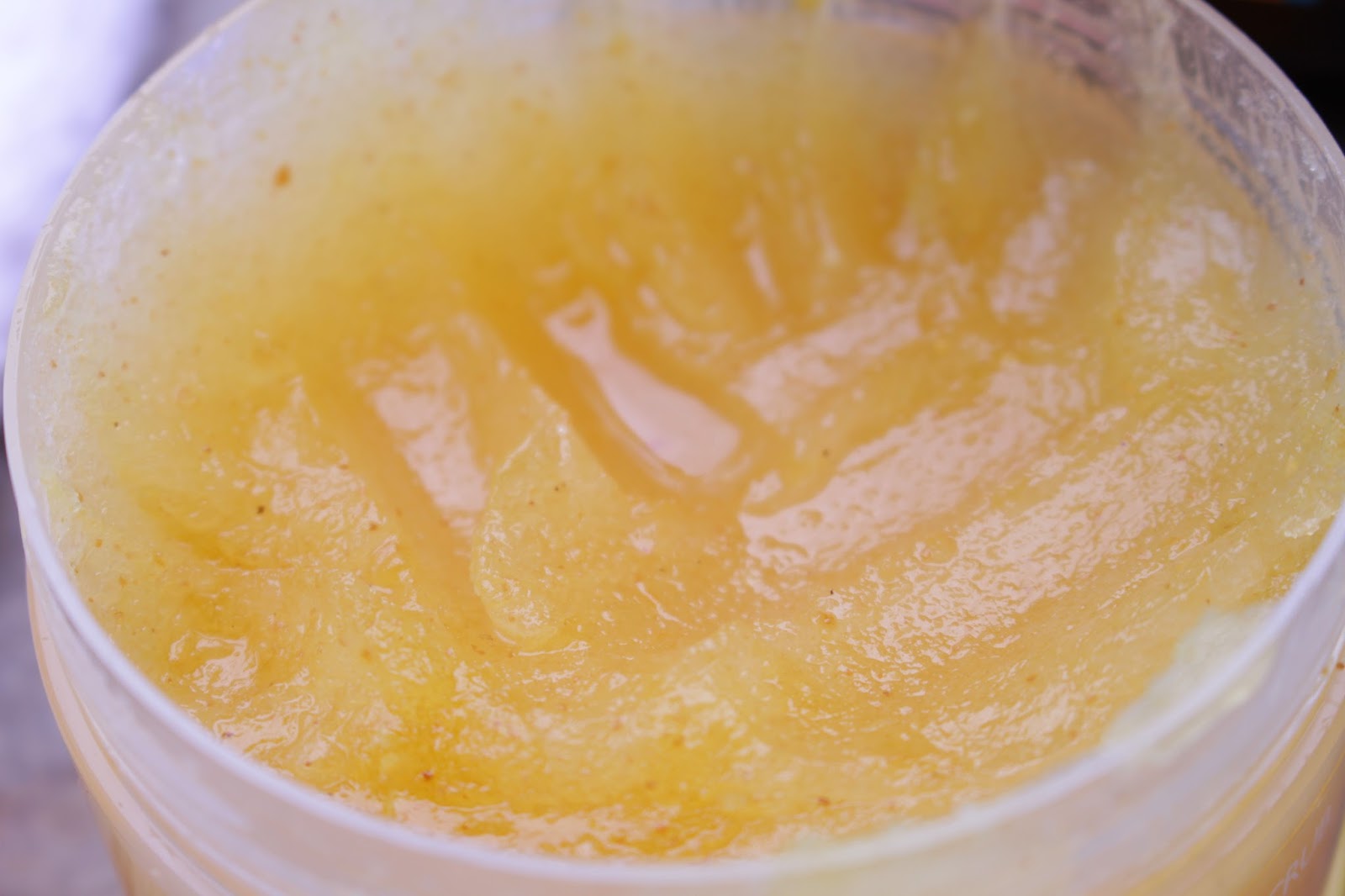 The other is Sweet Lemon Sugar Body Scrub. Its texture is a closer to a gel with sugar and an invigorating scent of lemon pie.