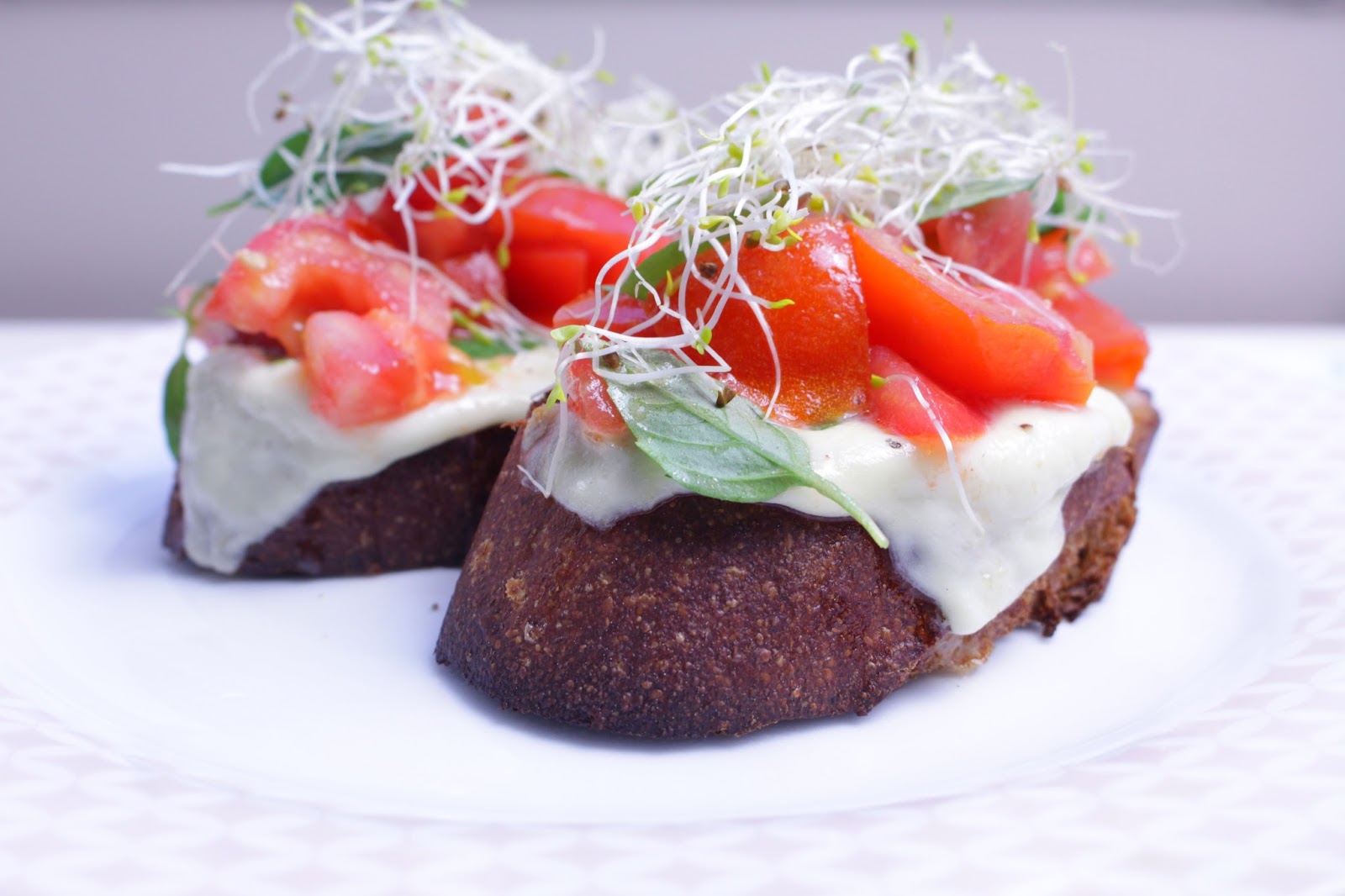 Coupez des tranches de pain d’environ 1,5cm. Les déposer sur un papier sulfurisé sur une lèchefrite avant d’y déposer un filet d’huile d’olive (environ 1 cueillère à soupe). Faire griller le pain dans un four, préalablement chauffé à 220°C pendant cinq minutes environ. Le pain doit être croustillant.