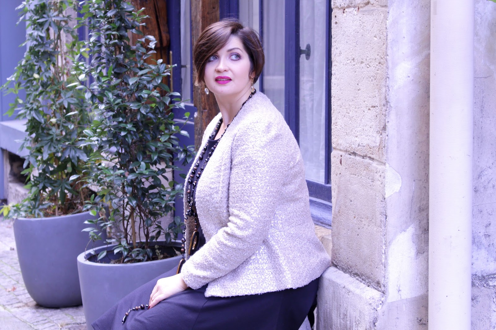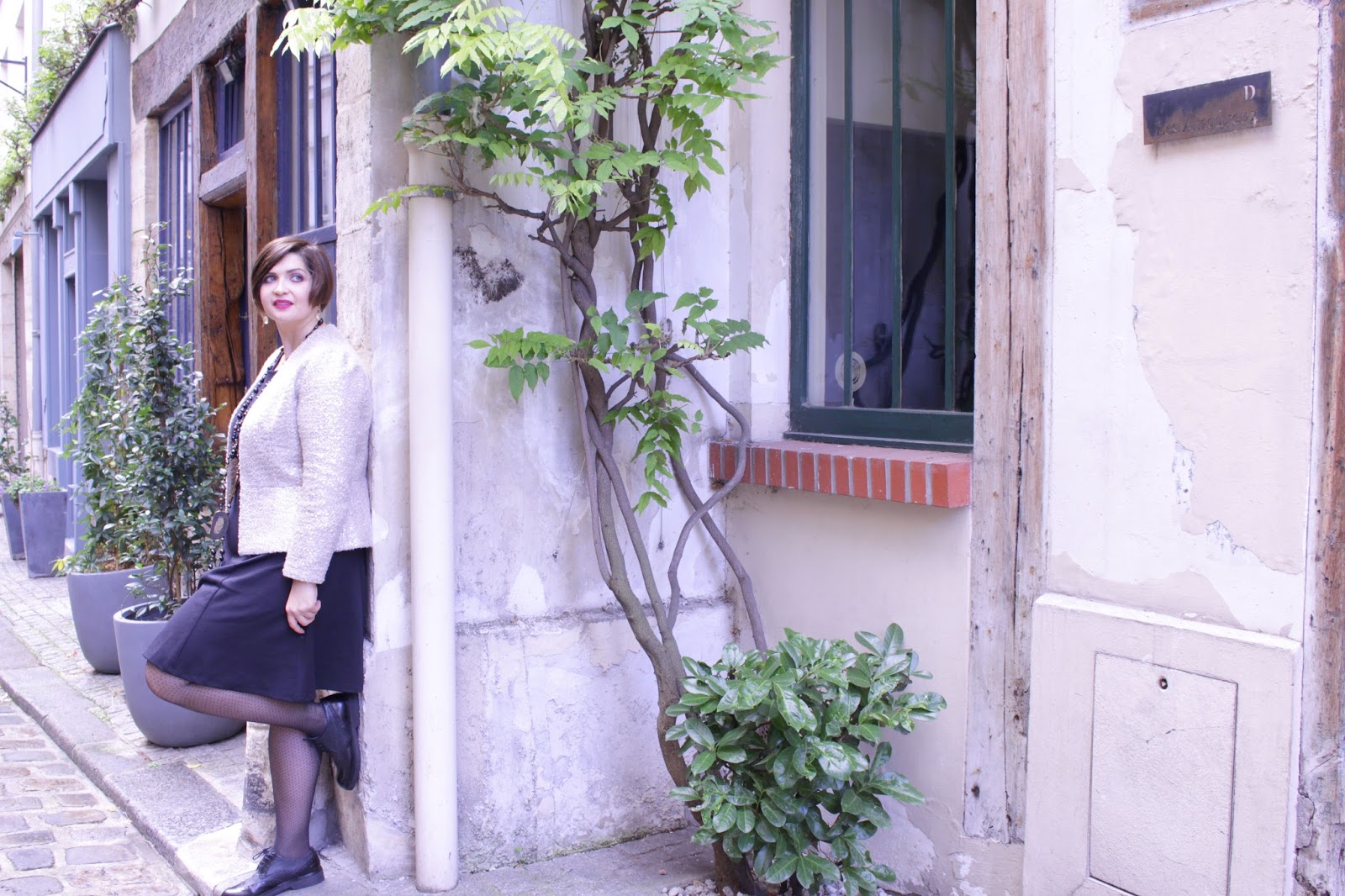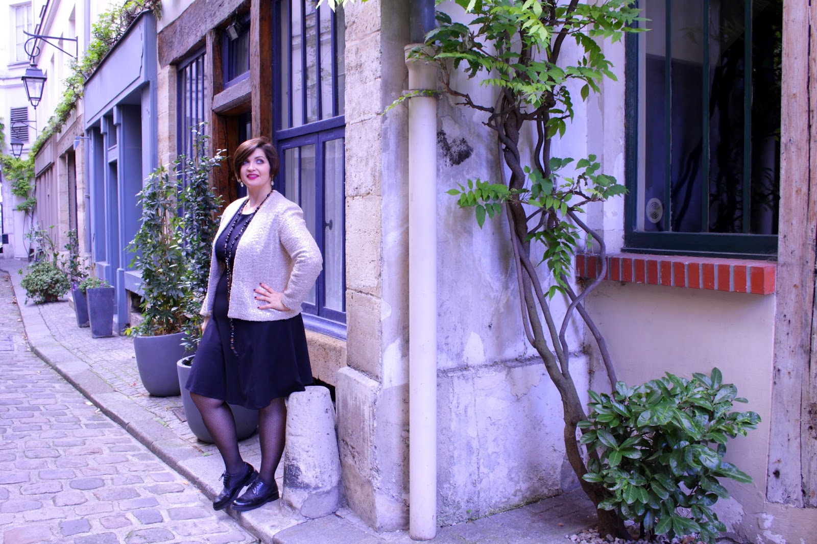 To highlight this look, I wanted to change locations, try to offer you a somewhat different staging from the « tourist » places of Paris. So I searched the lesser known places, almost secret passages of the capital and my choice fell on Cour Damoye in the 11th arrondissement of Paris. This court is a little out of time with its window walls, its plants and silence of being behind the great avenues. The Cour Damoye houses shops and other businesses and is easily accessible. You can easily access via the Place de la Bastille (number 12) or rue Daval (also No. 12). Cour Damoye is open from 9am to 8pm on weekdays, Saturdays from 10am to 8pm and on Sundays and bank holidays from 1pm to 7pm.