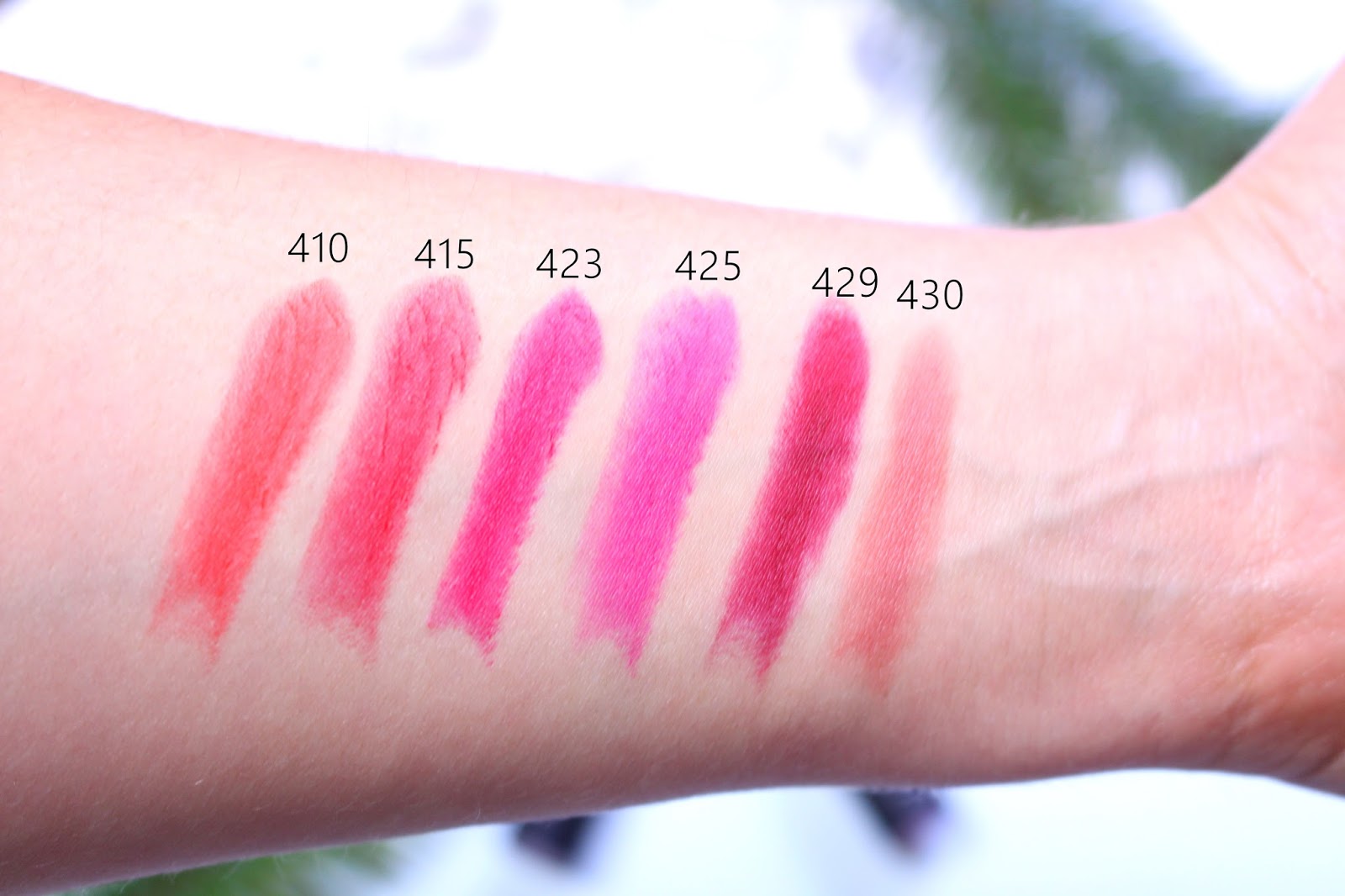 - 423 Rio Fuchsia Matte: bright raspberry red,