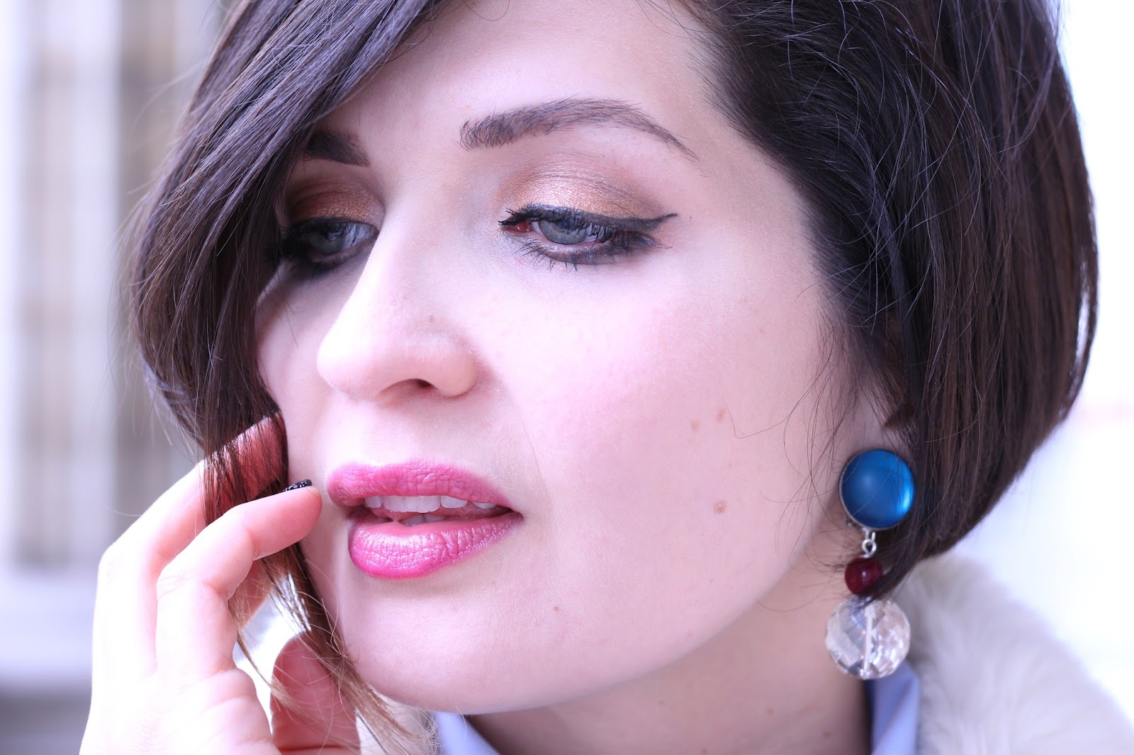 Avec OGGI, nous avons choisi d’ajouter une touche de féerie avec des camaïeu de bleu travaillé à travers le Murano: bleu lavande, bleu canard, etc. que nous retrouvons sur la bague et la broche que nous avons glissé au niveau du noeud de la chemise. Pour ce qui est des boucles d’oreille, nous retrouvons également une pointe de bleu, de rouge et surtout de la transparence. La boucle avec ces trois temps met en valeur les trois structures de la chemise: le col, le noeud et le tombé.