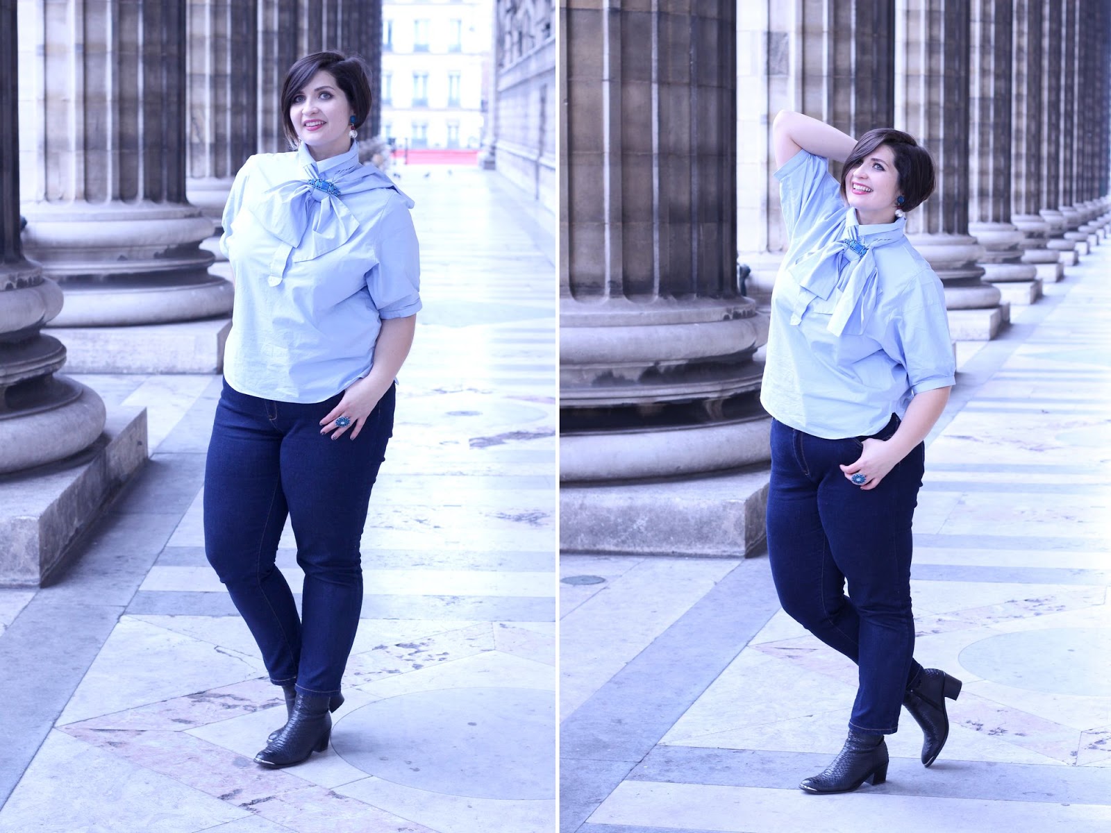 Obviously, blue is the flagship color of this outfit. You know how much I love that color. Between the denim, this sky blue shirt and the handbag, I’m in heaven!