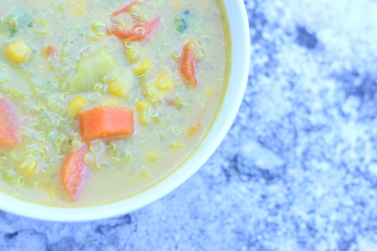Add the corn and quinoa. Finish with coconut milk. Thicken the soup by leaving it on a medium heat for a few minutes.