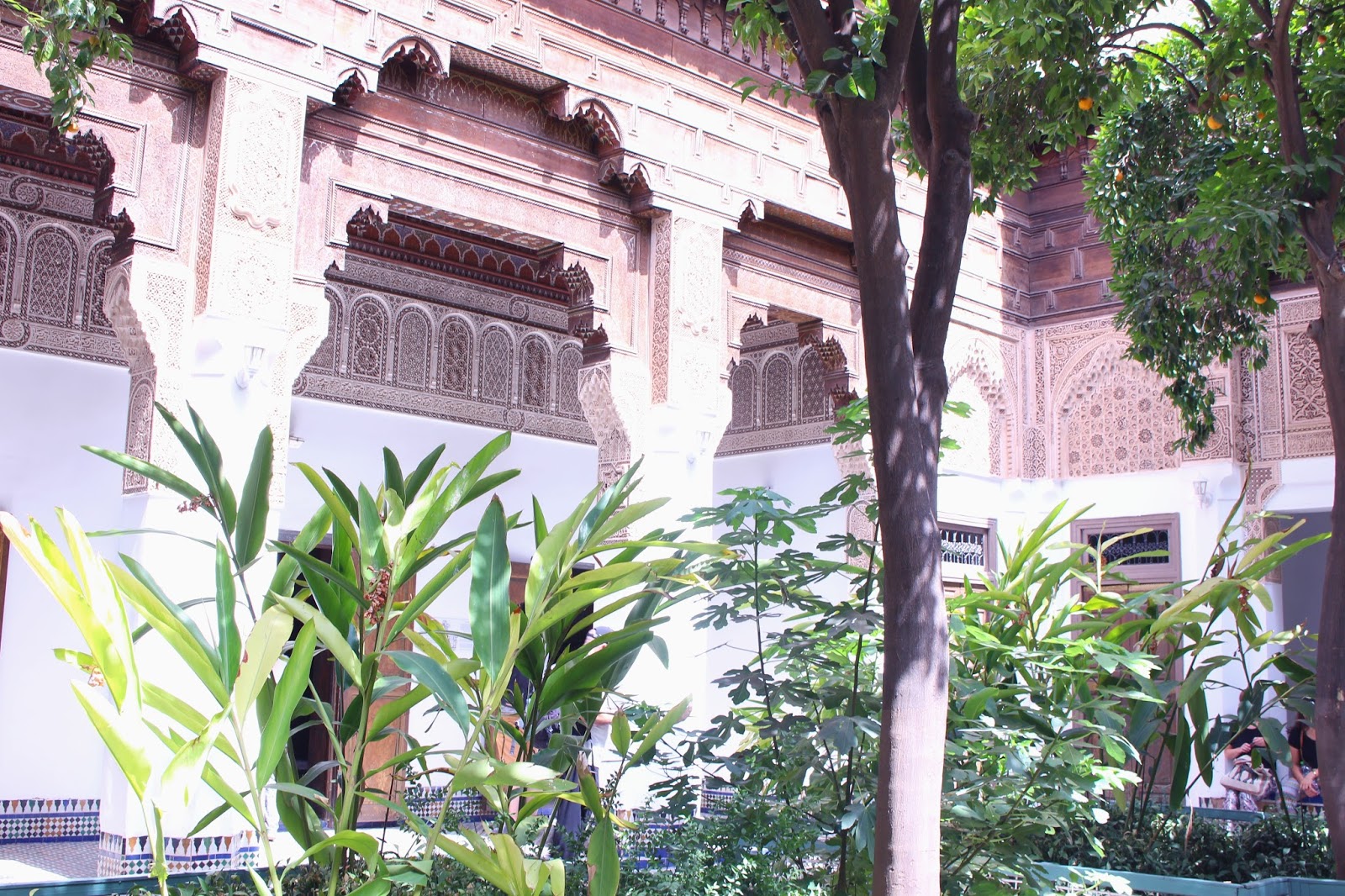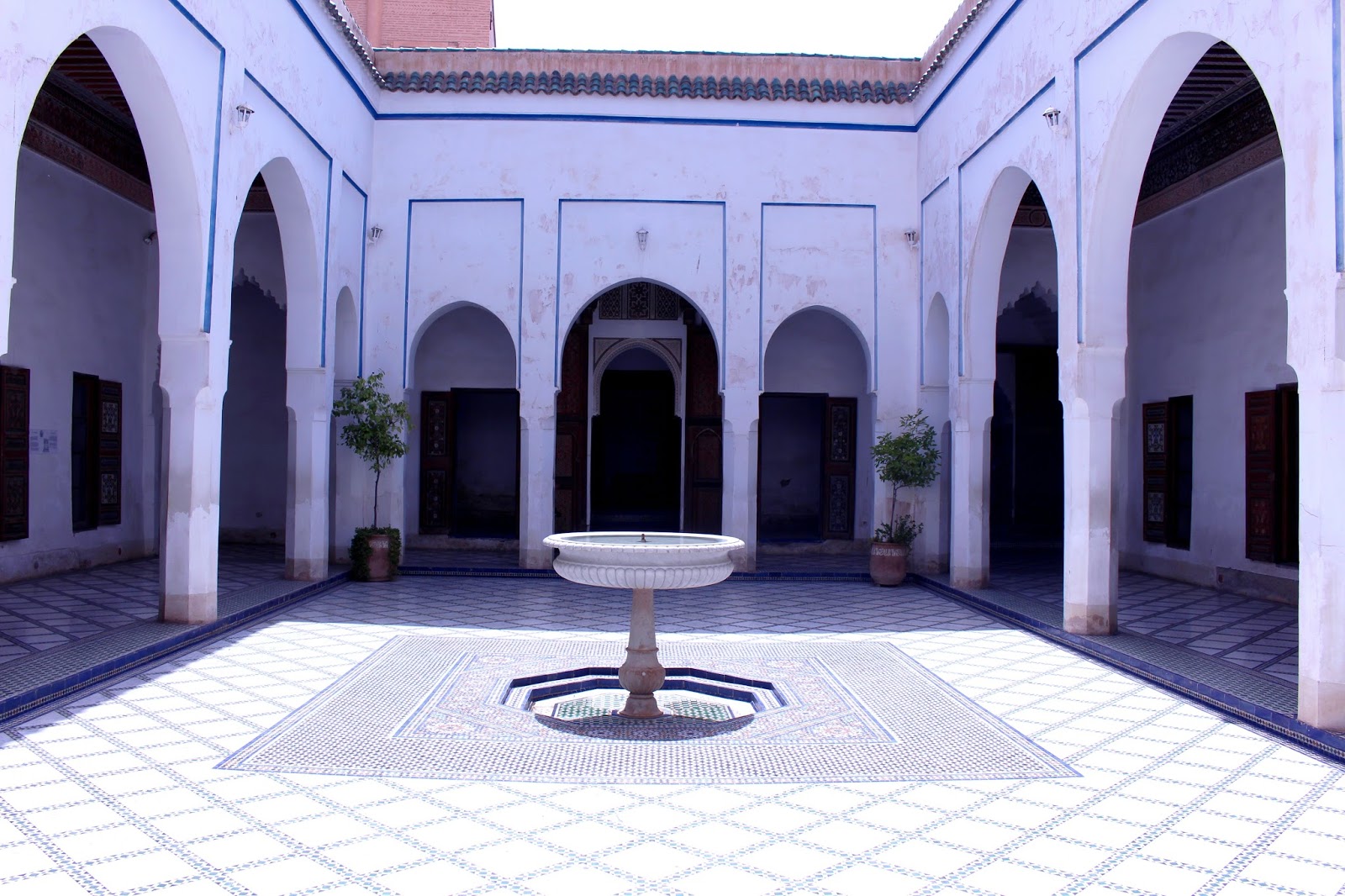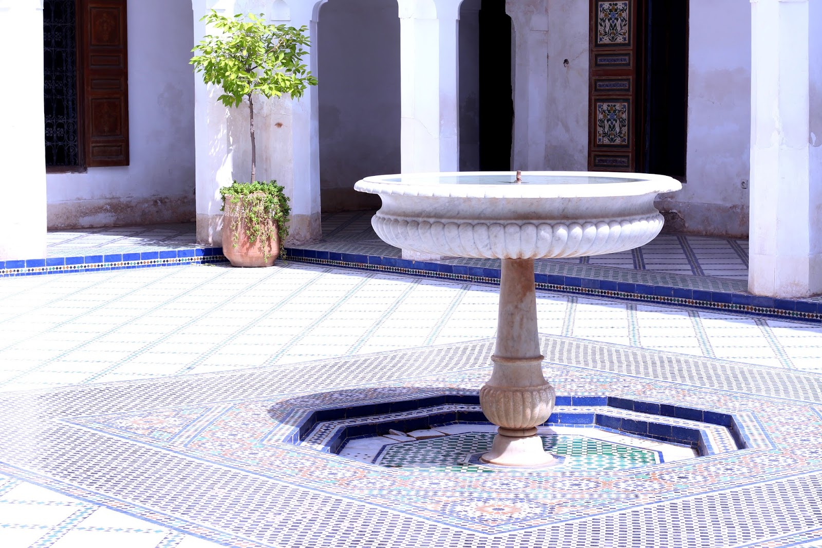 With Khalid, we visited all of Marrakech. Our journey starts with the magnificent Jardin Majorelle. I could have spent my day there so the place seemed to disconnect from the world. It is beautiful, calm, in short, a real invitation to daydream. I understand better why Yves Saint Laurent was going to seek his inspiration in this place.We then passed through the alleys of the Medina and made several stops. In addition to visits, Khalid made me visit two riads run by French (Riad Ba Sidi and Riad Analdine). Very nice places with refined decoration that makes me want to come back! In one of them, I even tasted the best watermelon juice of my life – knowing that I am a watermelon addict, I can tell you that I was touching paradise with my fingertips!We visit the Saadian tombs where the architecture is sublime. The next stop was the Medersa Ben Youssef (former Koranic school) where the course with the ablution basin is a delight for the eyes. The mosaics transport us into another era.