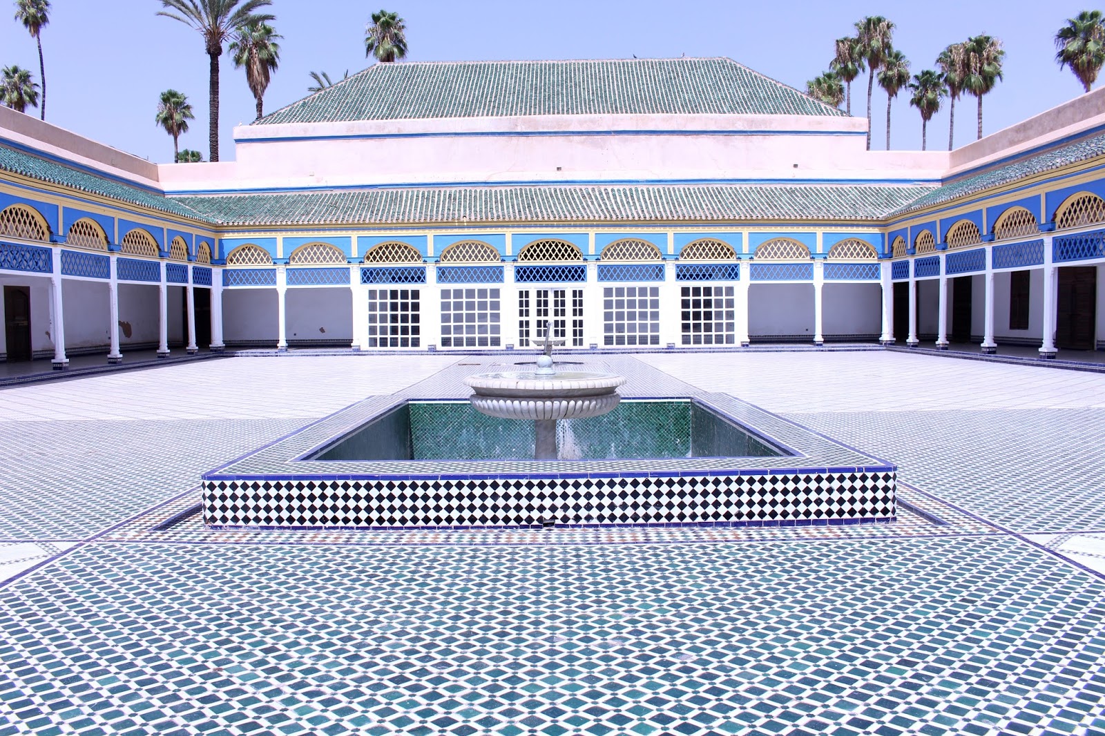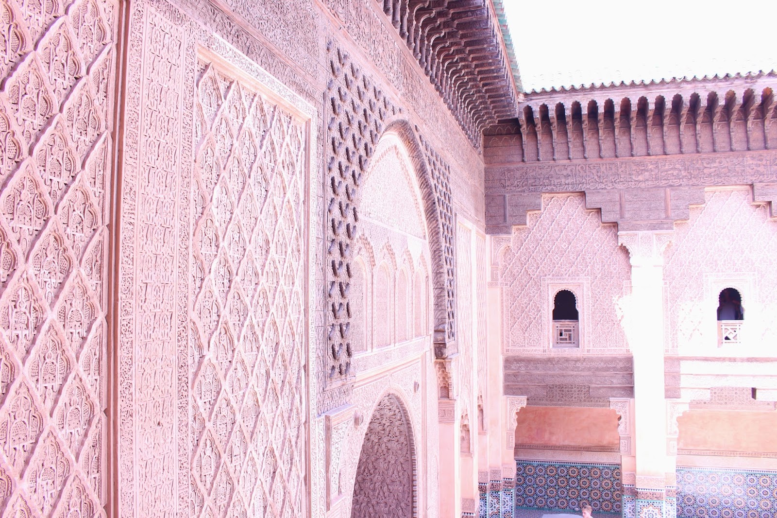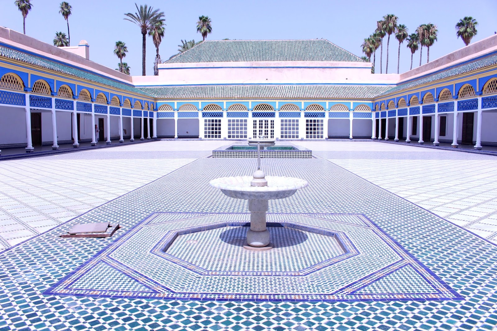 With Khalid, we visited all of Marrakech. Our journey starts with the magnificent Jardin Majorelle. I could have spent my day there so the place seemed to disconnect from the world. It is beautiful, calm, in short, a real invitation to daydream. I understand better why Yves Saint Laurent was going to seek his inspiration in this place.We then passed through the alleys of the Medina and made several stops. In addition to visits, Khalid made me visit two riads run by French (Riad Ba Sidi and Riad Analdine). Very nice places with refined decoration that makes me want to come back! In one of them, I even tasted the best watermelon juice of my life – knowing that I am a watermelon addict, I can tell you that I was touching paradise with my fingertips!We visit the Saadian tombs where the architecture is sublime. The next stop was the Medersa Ben Youssef (former Koranic school) where the course with the ablution basin is a delight for the eyes. The mosaics transport us into another era.